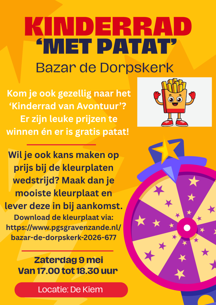 Kinderrad "met Patat' 9 mei 2026, 17:00 uur - 18:30 uur Kom je ook gezellig naar het "Kinderrad van Avontuur? Download hier de Kleurplaat en win een mooie prijs