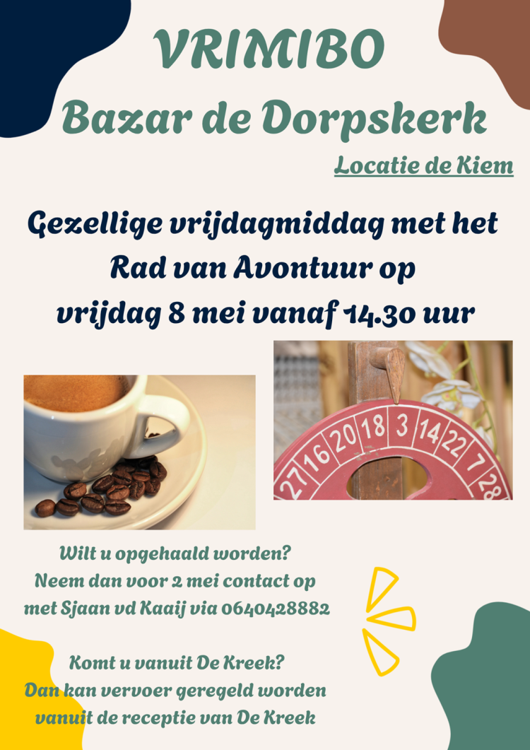 VRIMIBO 8 mei 2026, 14:30 uur - 18:30 uur De Kiem, Koningin Julianaweg 91, 's-Gravenzande Gezellige vrijdagmiddag met het Rad van Avontuur