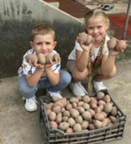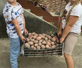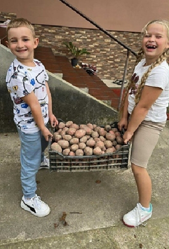 In ons transport van afgelopen maart hadden wij een aantal pallets met pootgoed aardappelen verstuurd. Deze zijn na aankomst direct gepoot door de mensen daar. Nu kregen wij foto’s van blijde en trotse kindergezichten met een prachtige aardappeloogst. Dit betekent dat ze de komend tijd zelf voorziend zijn en van hun eigen oogst kunnen genieten. Voor ons en voor u een bevestiging dat de hulp op een goede plaats terecht komt.